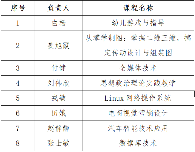 冀中职业学院在线精品课经各系部申报、专家评委评选,最终研究确定八门课程为拟立项课程,现经行公示,如有异议,请电话或书面形式向学院教务处反映。