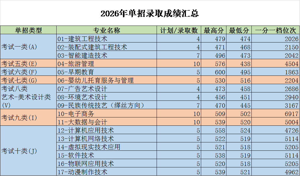 2026年单招录取成绩汇总